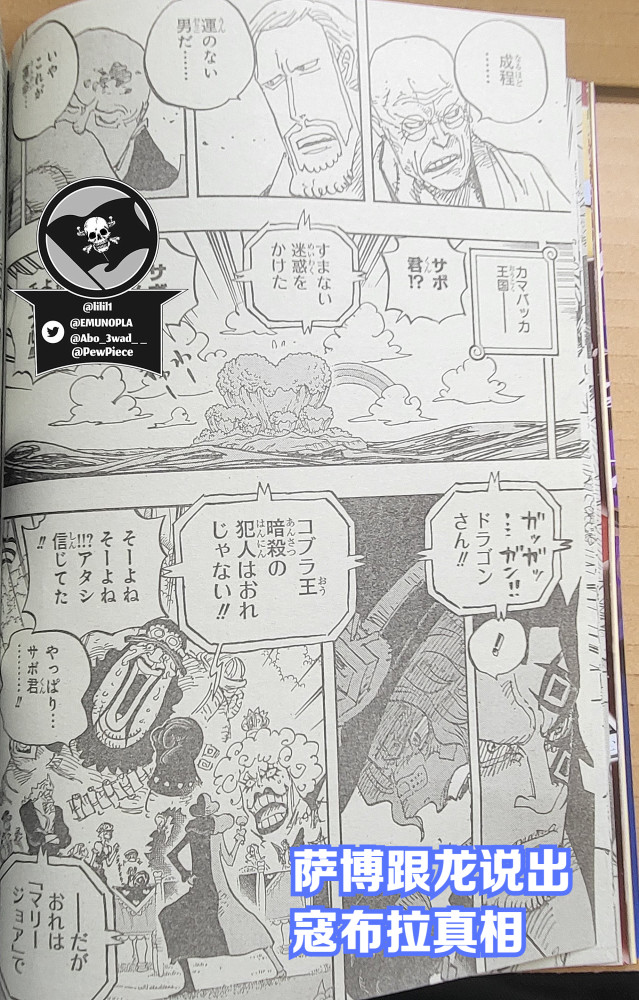 镜头转向人妖岛,萨博正在与龙等人对话,提到了世界会议的重大细节,如暗杀寇布拉并不是他做的,这也是伙伴们相信的点。