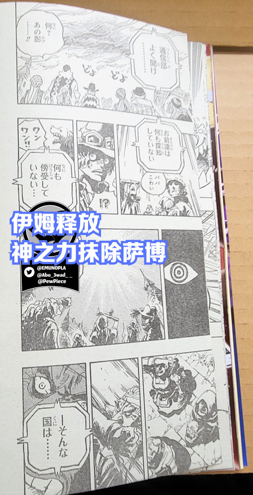 镜头一转,尾田大神给出伊姆大人的镜头,依旧是黑漆漆只有一只眼睛,而分镜下的萨博正在公布关于【虚空王座】上面的【人影】,此人正是【伊姆大人】。