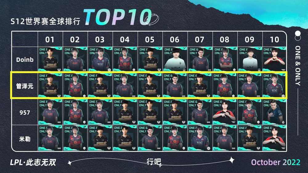 欧美赛区整活一直是他们的日常,大家都是图一乐,LPL赛区的解说在节目中评世界赛TOP10,米勒心目中的TOP1是Kanavi,Doinb的是Chovy,957的是牙膏。大家最关注的是管泽元,作为LPL“毒奶”最强的解说,他心目中的TOP10为:Ruler、小天、Peanut、Kanavi、Chovy、369、Lehends、阿水、牙膏、圣枪哥,看完之后观众集体表示感谢。