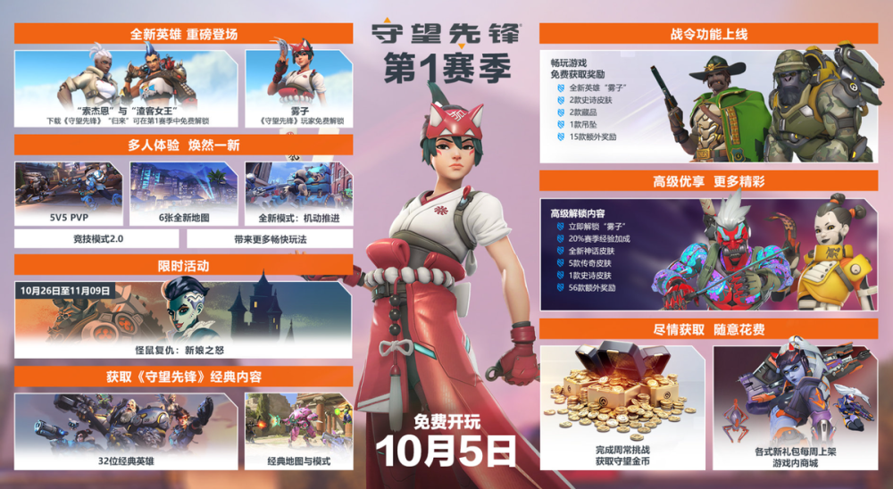9月15日,在东京电玩展上,《守望先锋》“归来”公布了全新的英雄雾子及首个强自定义神话皮肤等一系列内容。至此,《守望先锋》“归来”第一赛季的相关内容已经露出了大半真容。