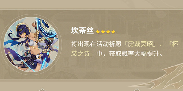 上半卡池新角色赛诺,温蒂,新四星角色坎蒂丝陪跑
