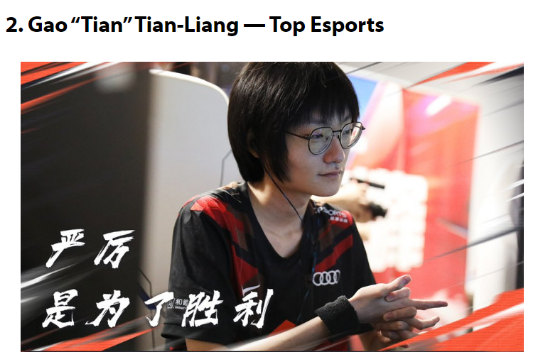 打野位置TOP2给到了GEN打野Tian,韩媒给出的理由是:2019年世界赛的野区被Tian主宰,FPX拿下了那一年的世界冠军,Tian拿到了FMVP。从那之后,他经历了起起落落,包括手腕受伤。刚加入TES的时候,他和团队的配合没有那么好,但是当他们默契达成的时候,Tian就变成了野兽,他在夏季赛拿到了常规赛MVP的荣誉,作为一位前世界冠军选手,Tian今年的目标也肯定是冠军奖杯。