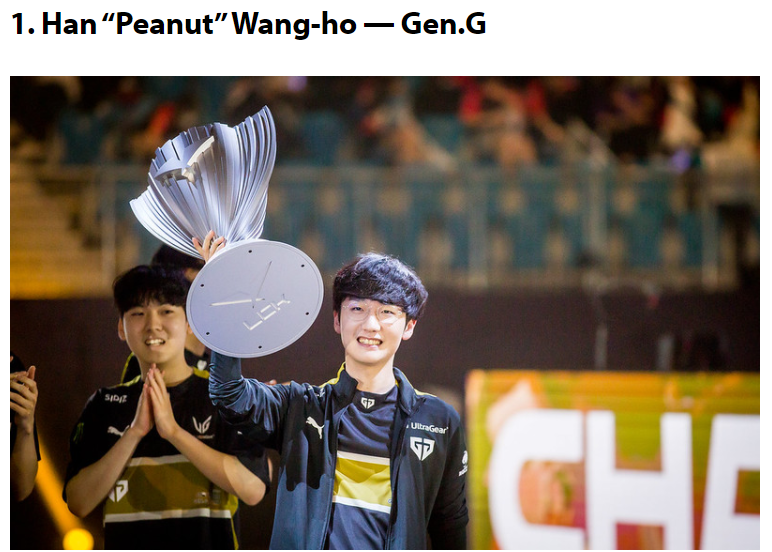 打野位置的TOP1韩媒给到了GEN的打野peanut,理由是:岁月把peanut变成了一位聪明的打野,他拥有创新的打野思路和广泛的英雄池。这个变化将peanut带到了职业生涯第二个高峰期,并且让他赢得了LCK冠军和决赛的FMVP。peanut是目前LOL所有职业选手中最有经验的其中之一,他在职业生涯的大部分时间里都处于巅峰期,在国内和国际大赛上都取得过成功,但他还没有举起S赛的冠军奖杯,今年可能是属于他的一年。