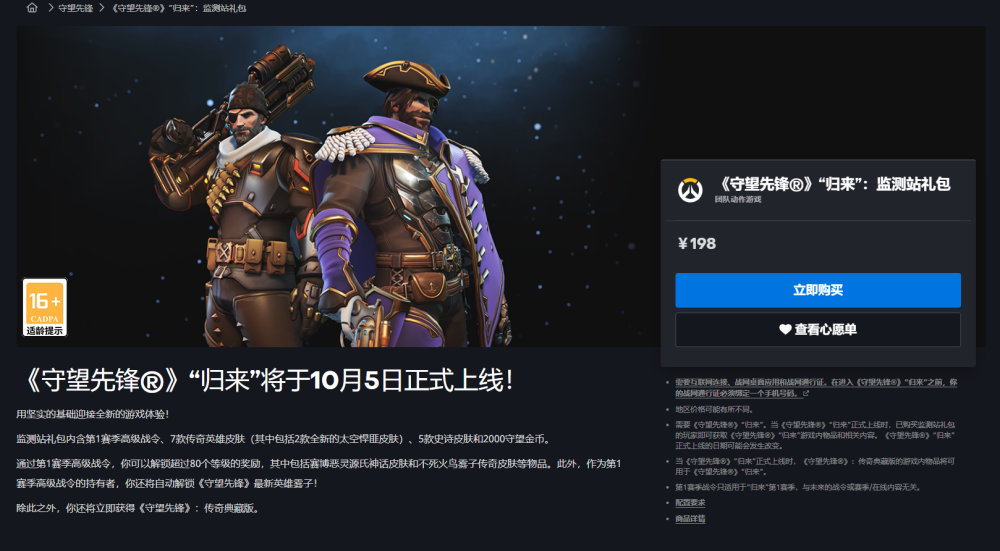 在《守望先锋》稳定更新的情况下,反正每个赛季都要玩,那也当然是买监测站礼包最省事,除了刚刚提到的白送皮肤以外,还能直接不用操心前面三个赛季,等三个赛季过完又累积到了1620金币,这个时候我们就可以用金币外加补点差价,直接续到第五个赛季,大半年数个皮肤总共才需要花费200左右。