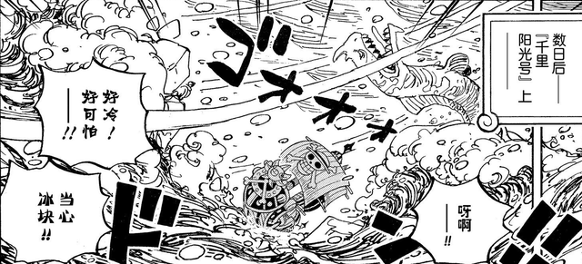 基地里,贝鲁梅伯希望从贝加庞克那里借到炽天使去救克比,因为之前克比被黑胡子绑架了。另一边,路飞、甚平、乔巴还有波妮和其他人分开(很有可能是因为上一话出现的暴风雪,他们四人被吹走),然后一个自称是贝加庞克的小女孩出现。