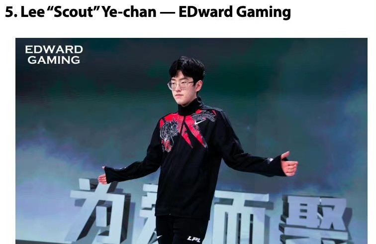 其实在近几年的话,LPL赛区的中单位置整体的水平还是非常不错的,尤其是两大国产上单,一个是小虎,一个是左手,这两名选手的表现,让大家觉得LPL赛区其实并不需要一味的在LCK赛区引进外援。那么在这次世界赛中单评级当中,排名第一的是来自LCK赛区GEN战队Chovy,排名第二的则是RNG战队的小虎,排名第三的是来自滔搏战队的Knight,排名第四的则是大家非常熟悉的faker,排名第五的是EDG战队的Scout,不出意料,连一个欧美赛区的选手都没有,全部都是来自LCK赛区和LPL赛区的选手,不过在外面选出这一评选榜单之后,实际上还是有着比较大的争议。