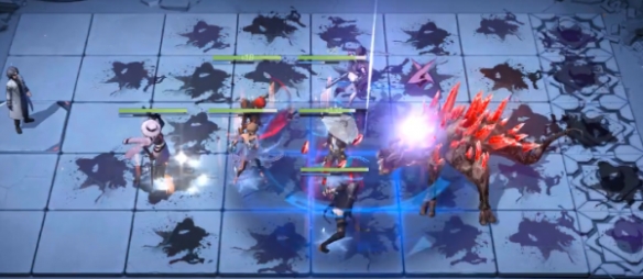 1、开局时可以向下图一样站位,在前排的是坚韧系角色和狂暴系角色,奶妈紧跟在后面为其回复。兰利之类的在后面输出,之后只需要注意躲避BOSS的技能即可。