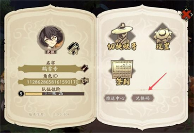 2、点击主界面左上角人物头像,弹出边栏的右边有兑换码按钮,点进入兑换码界面;