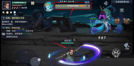 4、将所有的重心都放置在小怪的击杀上。每成功击杀一波小怪之后水精灵开始掉血987,我们只需要打掉其召唤的5波小怪即可。