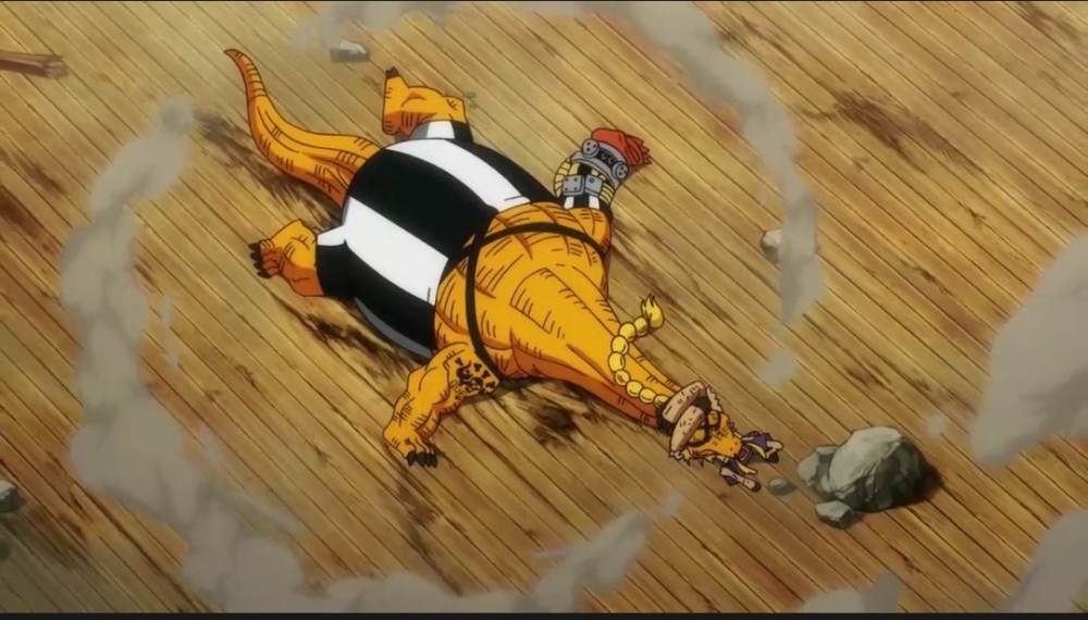 而桃之助这边,大和带着桃之助的假人冲了出去,想要借机引开凯多海贼团的追兵。而凯多的手下果然没有让人失望,直接把假人当成了桃之助,不过他们应该都是瞎子吧,毕竟那个怎么看都是假人吧,他们是怎么把他当成桃之助的。