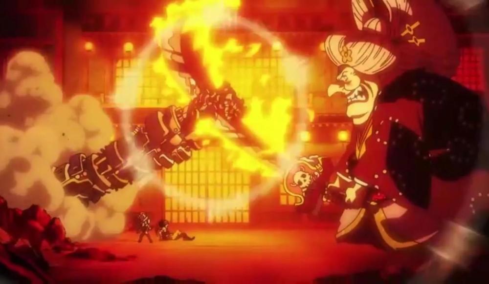 娜美和乌索普不愧是弱小三人组,两人组队太难了,一直在逃跑,根本没有实力对战百兽海贼团的干部,面对四皇大妈也只能等死。大妈刚想一刀砍下去,基德就赶过来,一只机械手臂挡住了大妈的皇帝剑,然后变成拳头揍了大妈,将大妈按在地上。大妈真的挺惨的,处处吃瘪,毫无四皇的样子,不过基德的攻击对大妈毫无作用。