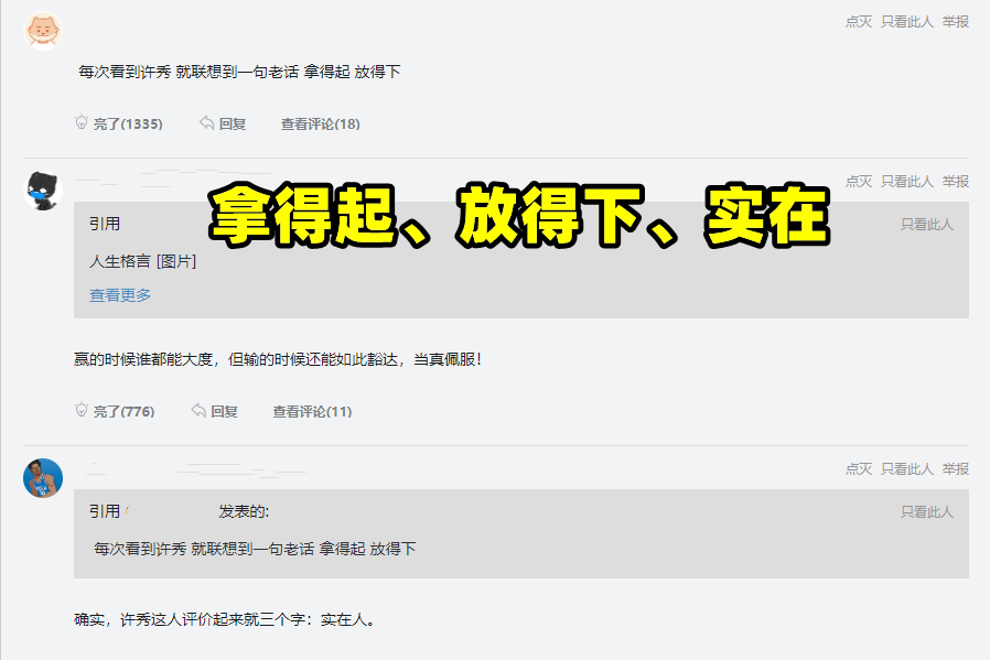 其实许秀令LPL粉丝们喜爱的原因还有一点,就是“实在”。每次提到许秀,都会令人想起那句“拿得起放得下”,虽然他自信并且有些狂,但如果比赛输了,他敢于承认自己和对手不足,给予对手该有的胜利祝福。一个敢打敢认的性情中人,想必在座的各位都是喜欢的,LOL一直以来都是实力为尊,性格加分,现在如此,未来也会如此,大家觉得呢?欢迎在下方留言评论哦!