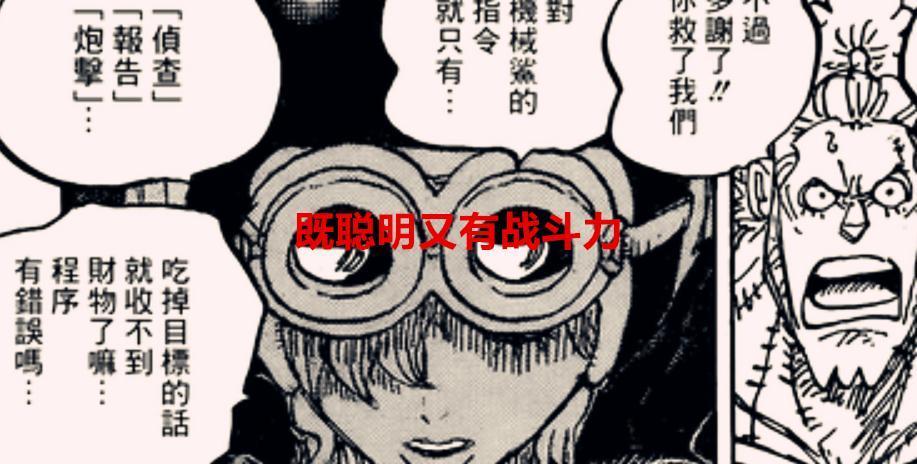 现在眼前的这个女版贝加庞克,给我第一个感觉就是不简单,甚至是战斗力爆表的一个角色,既有聪明的头脑,又有开挂一般的战斗力,这样才像贝加庞克的人设,尾田才对得起隐藏了20年的伏笔,就是她的能力已经超乎我们的想象了,这让我想起了龙珠里面的阿拉蕾,贝吉塔尝试跟阿拉蕾较量,但是被阿拉蕾直接秒杀,甚至把贝吉塔踢飞出地球了,这种被作者赋予开挂的人物,也是挺有趣的,所以我感觉女版的贝加庞克就是阿拉蕾,就算是被人弄断了头,也能自己接回去。