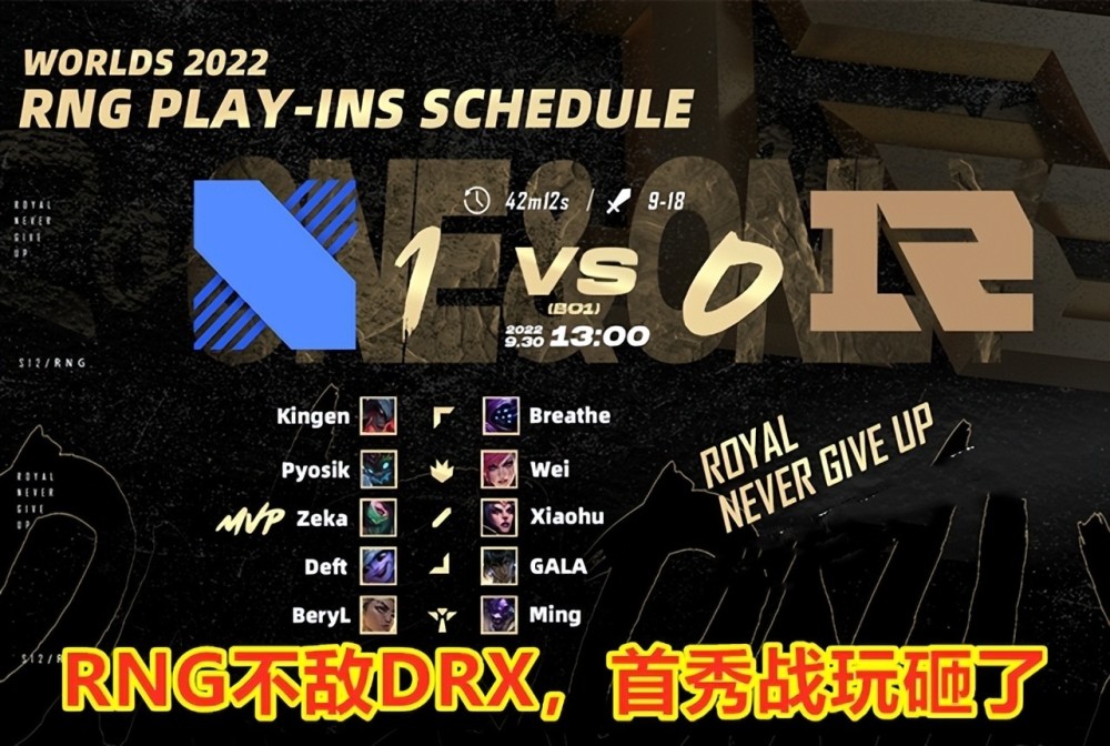 英雄联盟S12全球总决赛的入围赛,在9月30日正式鸣锣开赛开赛!LPL四号种子,本年度MSI冠军战队RNG,入围赛首秀迎战LCK的四号种子DRX战队。结果这一场首秀战,RNG玩砸了,在打了半场好局的情况下,后半程被DRX无情吊打。