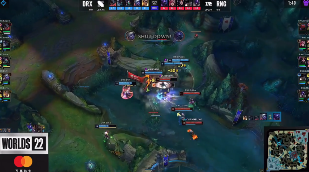 中期这波关键的小龙团,成为了本局比赛的导火索,这波团战如果RNG能拿下小龙,便有机会梭哈龙魂,但作为版本答案的大树在这一波发挥了完美的作用,他的大招分割了战场,直接将贾克斯与四位队友的位置隔开,布雷泽深入被精确的控制链秒杀。