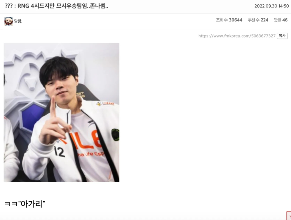 除了认为Deft是RNG克星之外韩网观众还表示大树这个点太关键了,前期占据优势的RNG硬是占不到视野的便宜,一个大树能轻松从RNG手中抢走视野控制权,对于这点LPL观众也比较认同,不过他们还有另一个解释,那就是小虎在看到大树扔儿子的时候心态崩了,这里和大家说一下里面的梗,主要是嘲讽小虎之前DT一事,毕竟大树有树苗儿子可以扔,小虎孤家寡人的看到这一幕有点绷不住,心态受损了,大多数LCK观众都借此机会嘲讽LPL赛区,因为赛前大部分观众都认为LCK赛区除了GEN之外其他都不行。