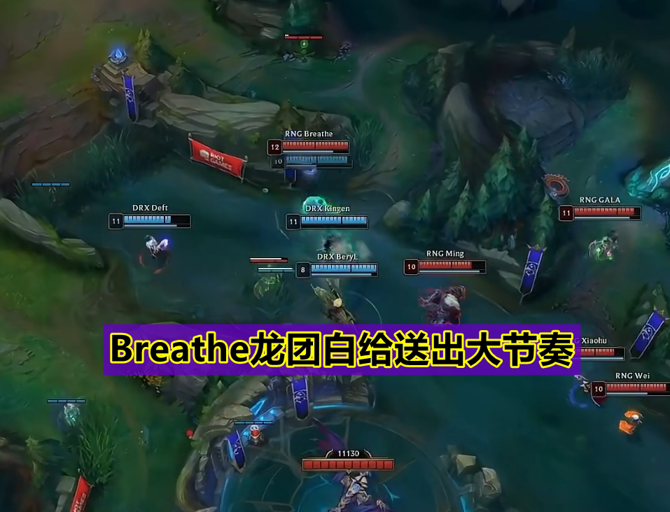 第三条龙团的时候,全场发育最好的Breathe,由于位置太差,连反击风暴都没用出来就被秒,非常不应该,这也是导致RNG走下坡路的开始。