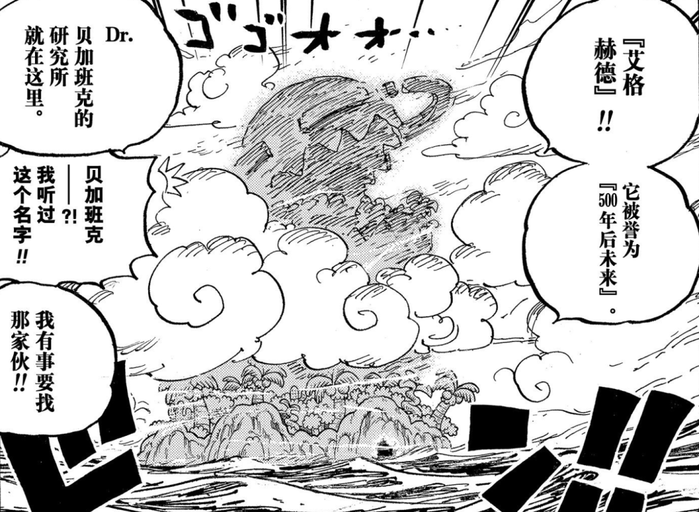 贝加庞克所在的岛屿叫【艾格赫德】,是一座被誉为500年后的未来,对应上官方提到的【整个世界】。