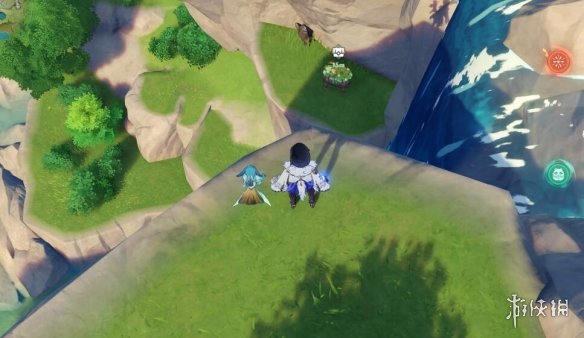 爬上高台后,向地图南方走,宝箱1在悬崖边。
