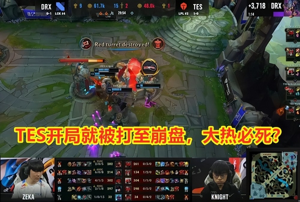 这场比赛在BP时,当囧王者看到TES首抢德莱文时,一度以为TES稳了。可惜的是,就是拿到了德莱文的下路双人组,成为了DRX的突破口,在比赛的10分钟左右,JKL和MARK意图越塔强杀Deft的女警,结果越塔过深,被赶来的Zeka双双击杀后,为TES的溃败埋下了伏笔。