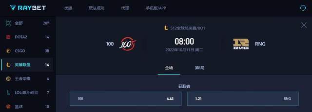 这场与100T的比赛只要能够拿下,那么第二轮RNG的出线压力就会减轻许多。虽然他们未必能够在最后锁定D组第一的位置,但击败100T就能确保大概率小组第二晋级。不过从这次世界赛LCS赛区队伍的整体表现来看,RNG只要不轻敌保持小组赛前两天的状态,拿下这场比赛的希望很大。从赛前专业电竞预测平台的数据能够看出,RNG是以1.21稳占上风,如果能拿下这场比赛那么RNG的出线形势就变得相当乐观。
