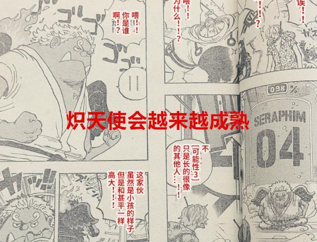 而炽天使的出现,直接打破了战力层,因为他们全都是七武海的翻版。在这一话情报没出现之前,炽天使都是以小孩子形态出现的,一共出现了三个,鹰眼女帝和大熊,但看起来,大熊貌似比鹰眼和女帝的炽天使略微成熟一些,我有一个大胆的猜测,炽天使是不是也会长大,逐渐变强呢?