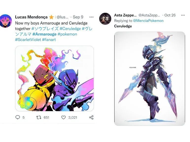 不过很明显,大部分网友还是认为二者的造型很棒,即使有些特别,但依旧不能否认,两位人形宝可梦确实很帅气,没过多久,网上便涌现出很多优秀的同人作品。