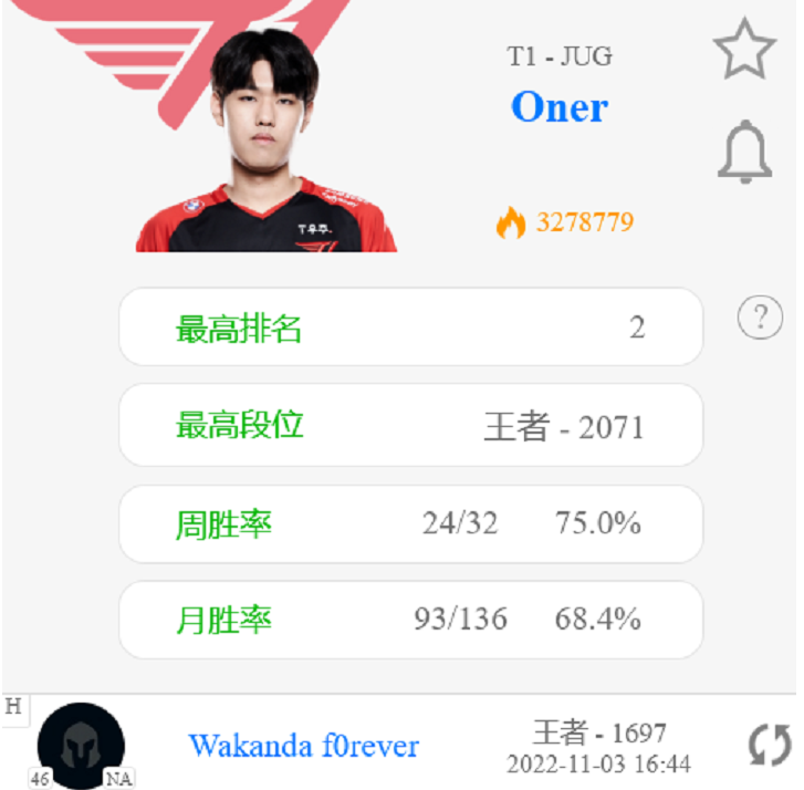 再看详细数据面板,征战LOL美服千分王者局,Oner可谓上分如喝水,不管是野核千珏,还是男枪,亦或者是破败王、岩雀、卑尔维斯,Oner都能在游戏前中期找到突破口,依靠高效Gank打开局面,随后控住野区资源,接管中后期团战,Oner一次又一次以MVP的姿态赢下比赛,火热手感展露无遗,有Oner坐镇野区,T1教练组大可放心。
