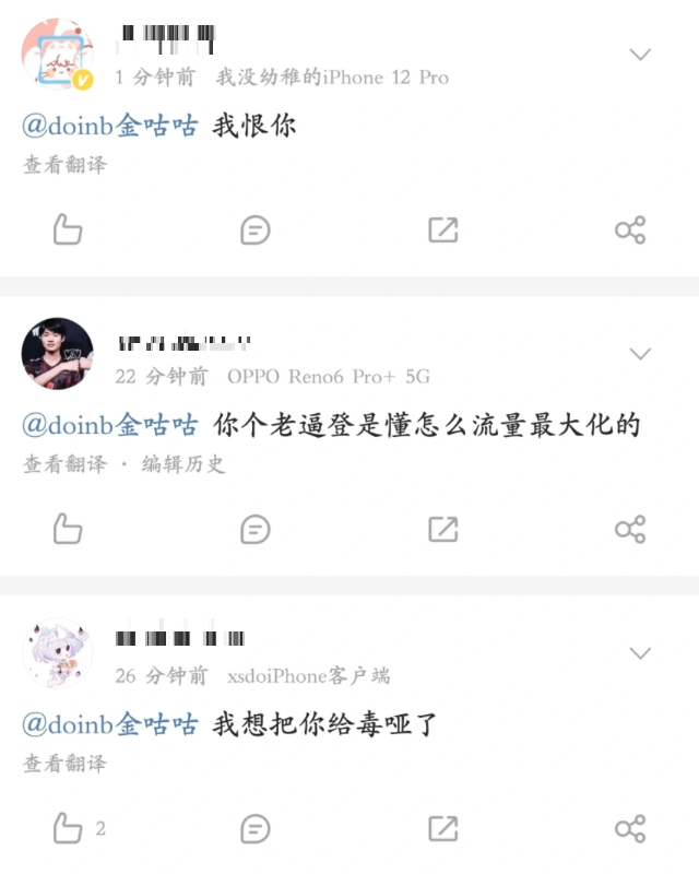 不管怎么样,两人至少在明面上是没有表现出什么深仇大恨的,其实离开最初的队伍后,和原队友之间的关系逐渐变淡也很正常,但是从doinb的话中也可以看出来,虽然不能说证明两人决裂了,至少可以说明刘青松是打算避嫌到底了。而在doinb爆料之后,自己也遭到了很多攻击,很多CP粉丝在微博上艾特doinb,有人直言讨厌doinb,也有人认为doinb说这种话就是为了流量,还有人在诅咒doinb,确实挺可怕的,难怪刘青松受不了,多次抵制这种行为。