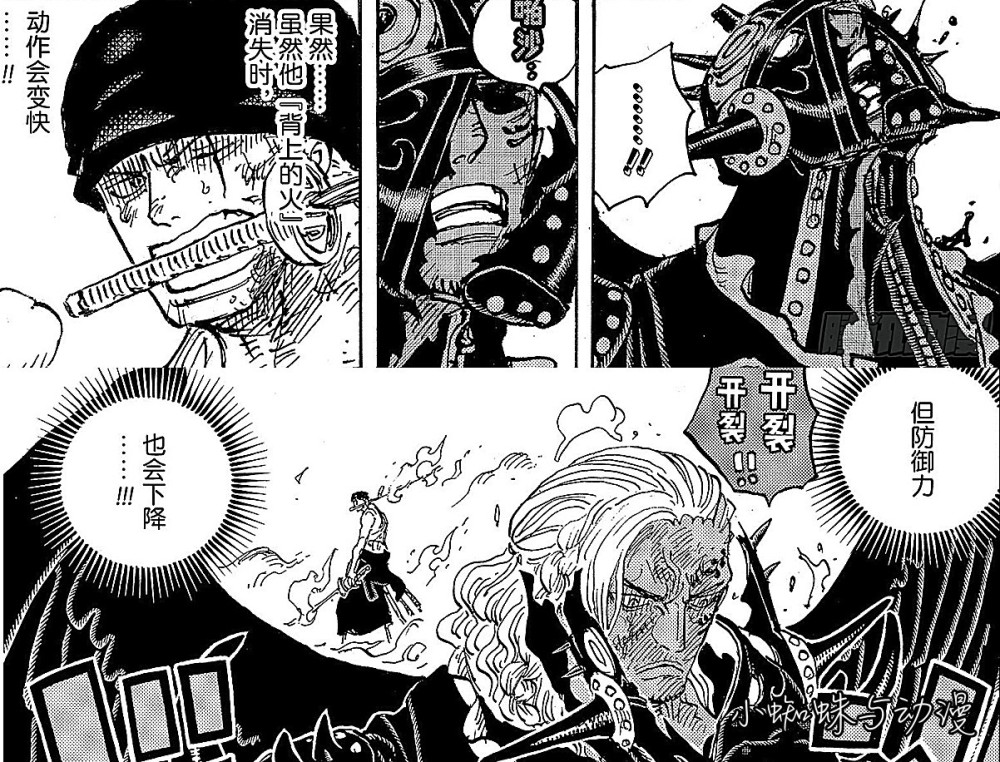 除此之外,本话被还出现了炽天使甚平的改造人,让山治等人陷入一场不小的困境中,这是尾田刻意安排的,也与索隆有关系。