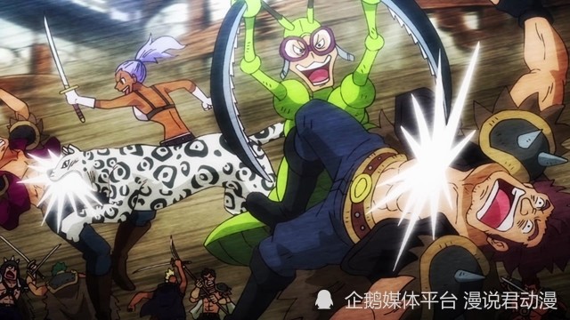 各处战场上的给赋者纷纷叛变,总数大概有300人。面对这种情况,百兽海贼团也是一脸懵B。奎因因为看到了全过程,察觉到是小玉搞的鬼,于是打算放激光消灭小玉。只是,奎因蓄力有点久,山治一脚就打断了。