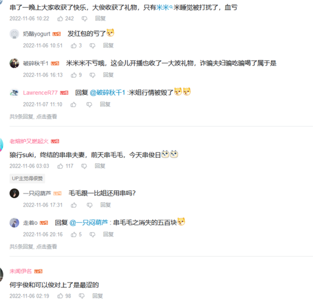 打电话的时候,其他解说起哄赵俊日和小米,说两人是一对情侣。当然,赵俊日不止炒过这么一个cp,之前的“夕日”也就是赵俊日和瞳夕,还有其他女解说也是他的cp。通过这种方式,解说能收获更多关注。