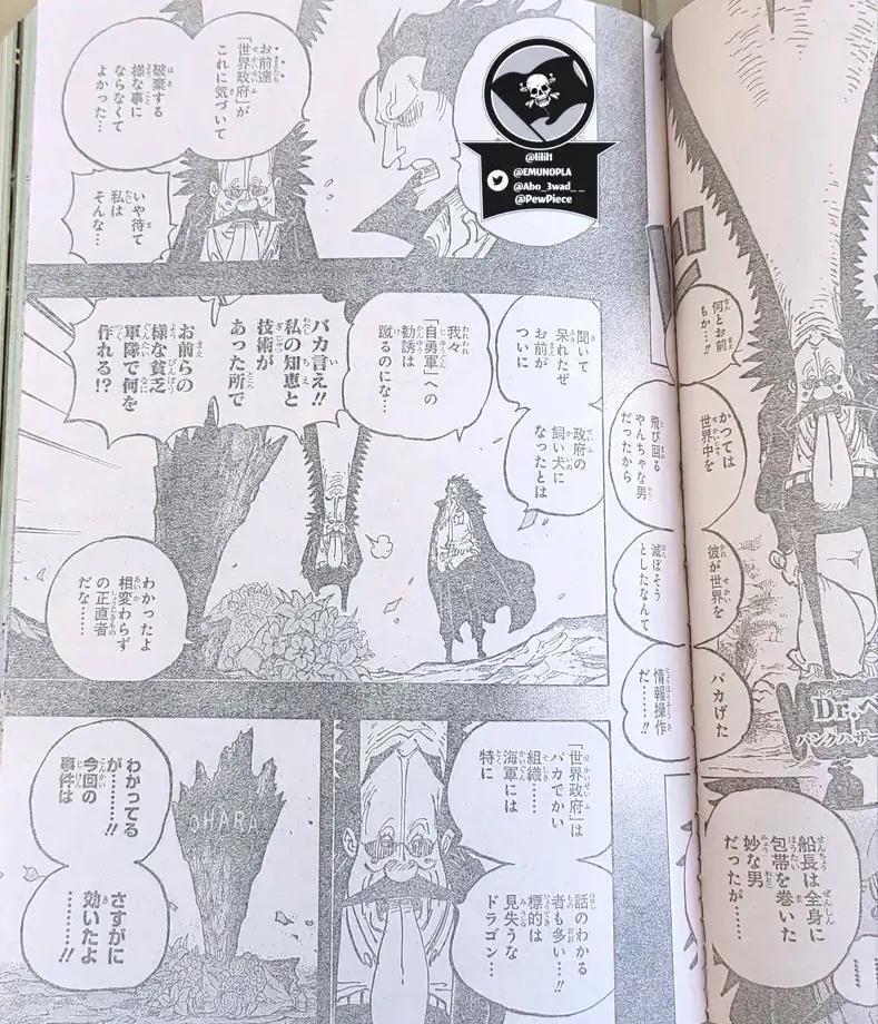 奥哈拉被世界政府消灭,这段历史对罗宾来说是一场难以回忆的灾难。贝加庞克帮罗宾回忆起那段历史,当时奥哈拉已经被灭了,除了罗宾外,没有幸存者,就连一些平民都没有逃离海军的追杀,赤犬擅自做主消灭所有的平民。多拉格和贝加庞克来到奥哈拉,目睹了人间惨剧,他们也无能为力。