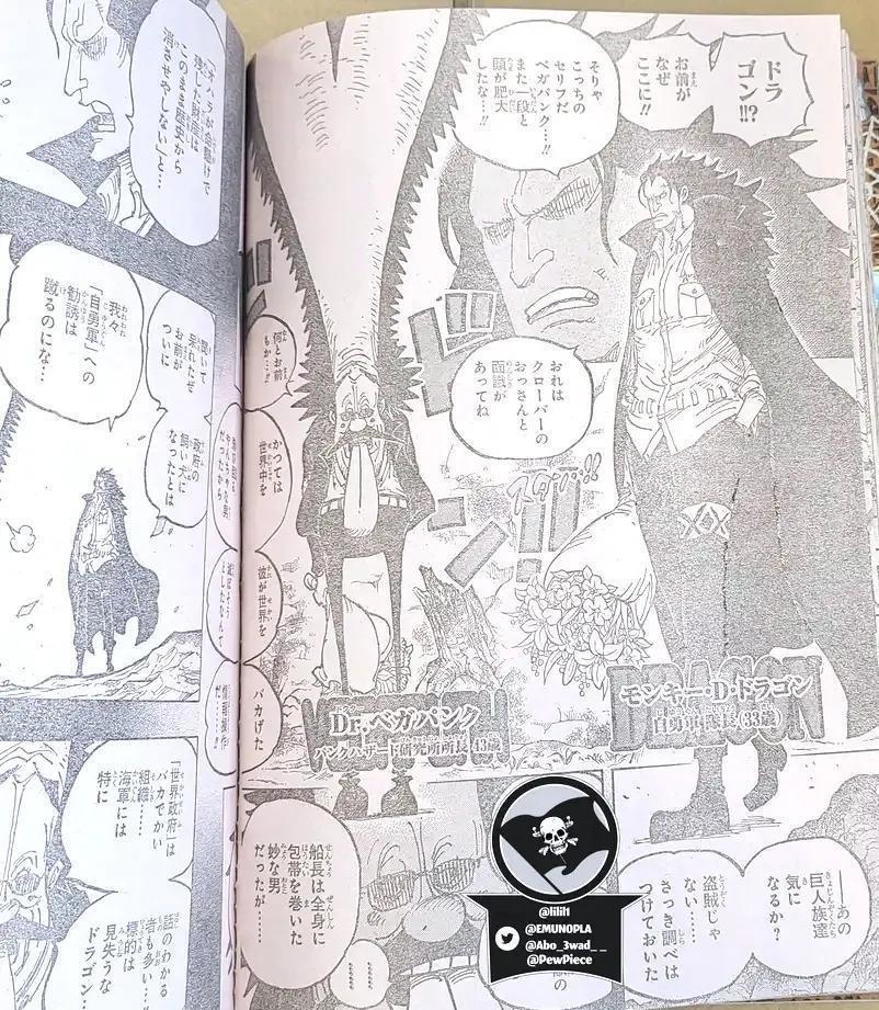 在最新一话中,年轻的多拉格登场了,他当时是33岁,贝加庞克是43岁。两人的年纪差距10年,贝加庞克头上顶着一个巨大的东西,长相很奇葩。33岁的多拉格就是帅气,头发很长,一身黑色的披风,脸上还没有拖鞋印。这时候路飞还没有出生,这是22年前,路飞是在三年后出生的。