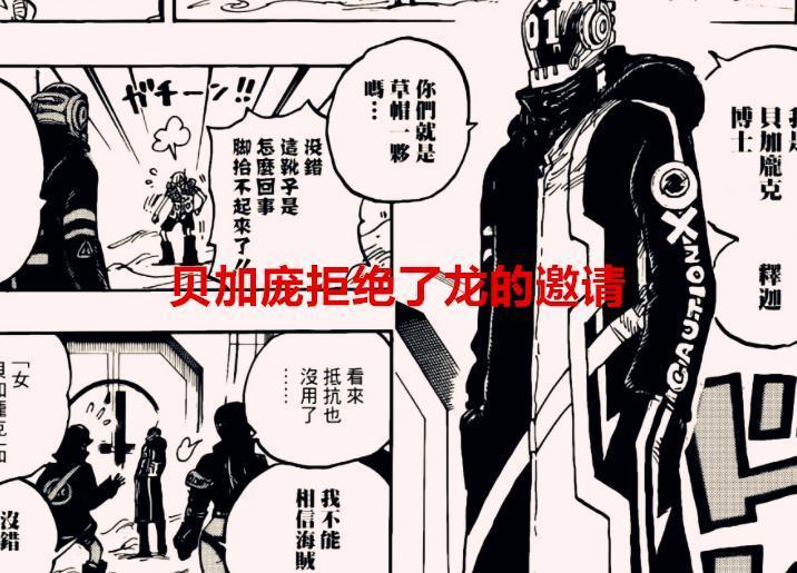 本以为,贝加庞克早就是龙的手下,但没想到的是,他们之间并没有我们想象中的那么好,根据情报所显示,贝加庞克跟龙一起去了艾尔巴夫岛,因为奥哈拉的书籍被一群巨人拉走了,所以贝加庞克拜访了艾尔巴夫,他在那里读了所有的书并且靠着他的智慧将书里的信息都记在了脑子里。而就在这时候,龙就请求贝加庞克加入革命军,但是贝加庞克拒绝了,因为他觉得,以他的智慧在一个资源更多的环境里才能得到更好的应用,而且贝加庞克也想进入世界政府,毕竟海军里面有很多人还是乐意为他服务的。