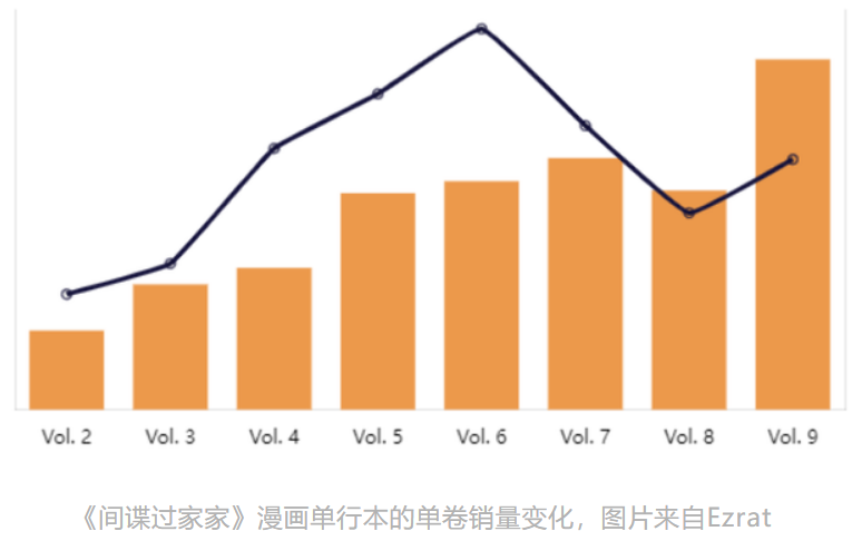在漫画本身就拥有较高口碑的前提下,《间谍过家家》的动画属于锦上添花。2022年4月4日发售单行本第9卷,累计销量达到1500万,9日动画开播后提升了漫画销售速度,1个月卖了近400万。