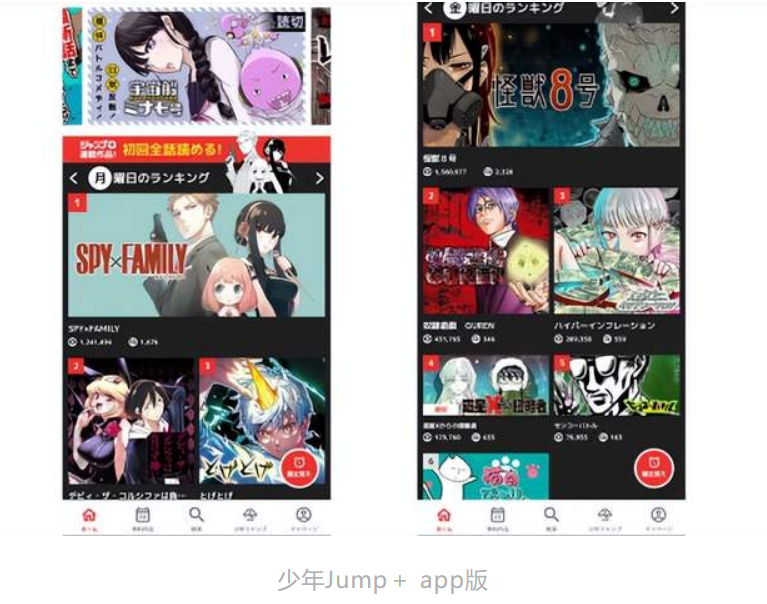 另一方面,得益于网络连载形式,便于SNS宣传传播,且《间谍过家家》刚开始连载时正巧赶上“少年Jump+”服务升级,推出了“第一回免费”的活动,吸引了广泛潜在读者,奠定了之后的基础。它也是目前“少年Jump+”唯二单话浏览量超100万的漫画,是人气第一的王牌作品。