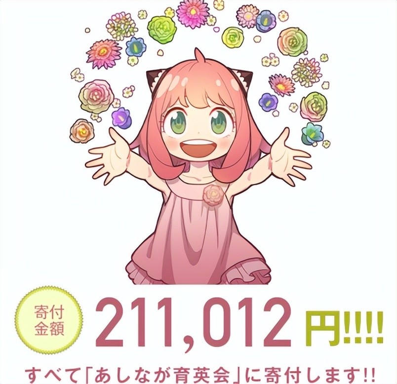 2021年2月发起公益活动“阿尼亚朋友项目”,募集同人创作,销售官方和同人组合的LINE印章,并将销售所得捐赠给育英会。最终超过5000人参加活动,捐赠资金21.1万日元。