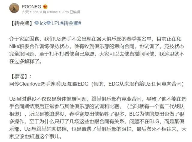 这两天里有关于uzi和麻辣香锅的消息也非常的多,但是这种爆料还是应该以吃瓜的态度去关注,毕竟并没有得到官方的任何回应,而且官方也不会给这样的事情做出任何的回应。当年S8赛季的问题确实很大,而且大家心心念念的队内语音是在一个月之后才放出来的,如果当时能够第一时间将语音放出来的话,我估计问题应该很快就会解决,也不可能拖到现在,还会有人质疑。这两名选手和战队都闹掰了,总而言之,肯定是有一定的问题的。