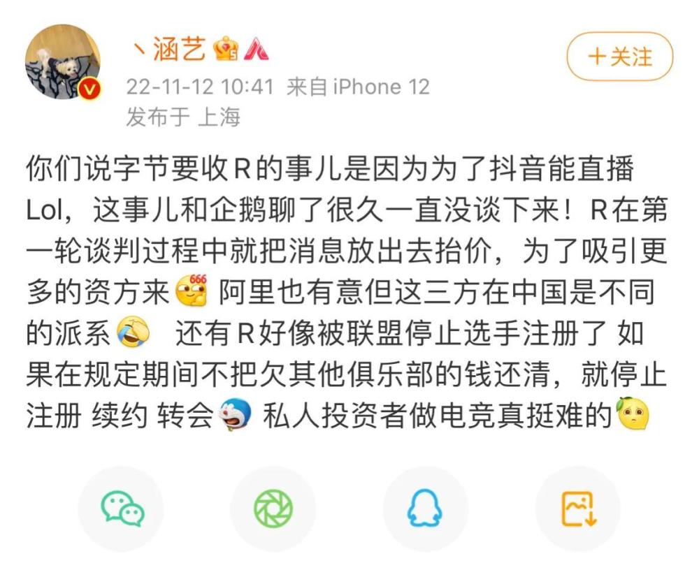这段时间,有关于rng战队的消息非常的多,甚至有一些玩家表示,现在的rng战队已经注资成功了,转会期会受到一些影响,但是不是特别的大。而V5战队的前教练也公开谈到了rng的现状,他表示你们说字节要收R的事儿是因为为了某音能直播LoL,这事儿和企鹅聊了很久一直没谈下来!R在第一轮谈判过程中就把消息放出去抬价,为了吸引更多的资方来!阿里也有意,但这三方是不同的派系.....还有R好像被联盟停止选手注册了,如果在规定期间不把欠其他俱乐部的钱还清,就停止注册、续约、转会!私人投资者做电竞真挺难的。