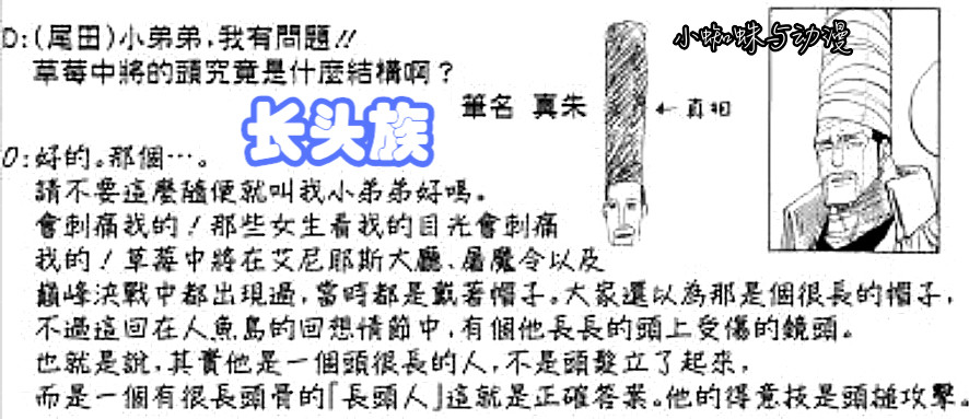 这个种族是在SBS中公布的,由海米向尾田大神提问海军中将【斯托洛贝里】是什么结构,从而透露出关于【长头族】的秘密。