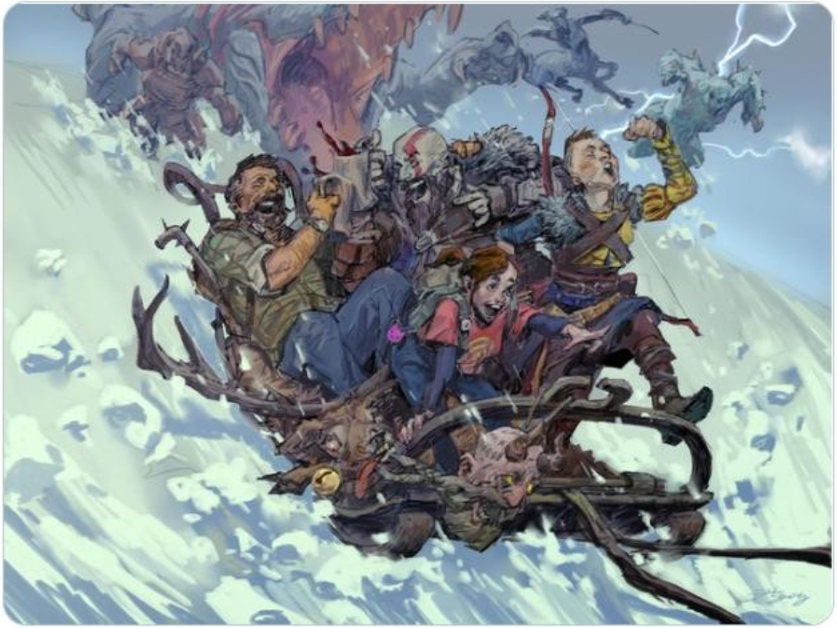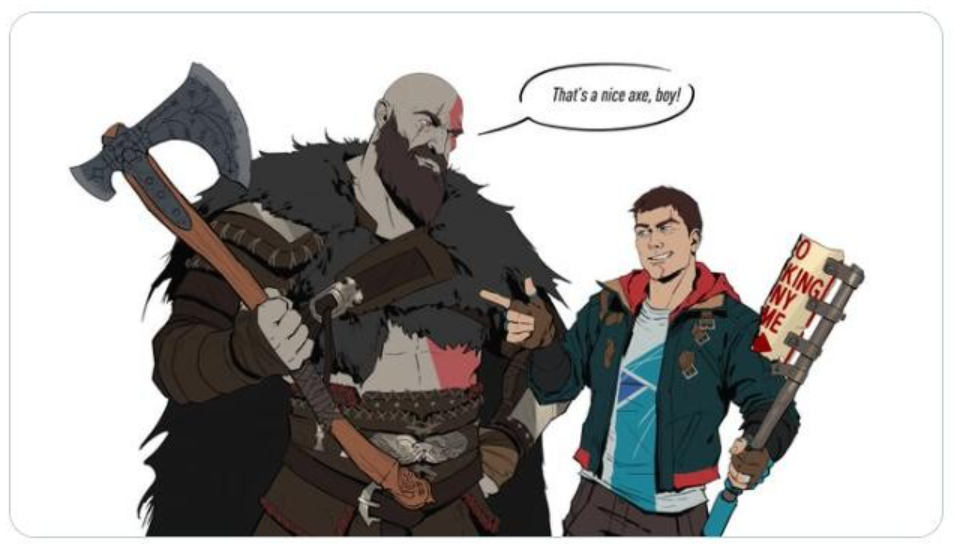 《战神:诸神黄昏》发售后,索尼称办公室无人工作,都去玩游戏了。这股热潮也影响到了友商,多家开发商发来祝福,画成自家游戏风格的图片,十分有趣。