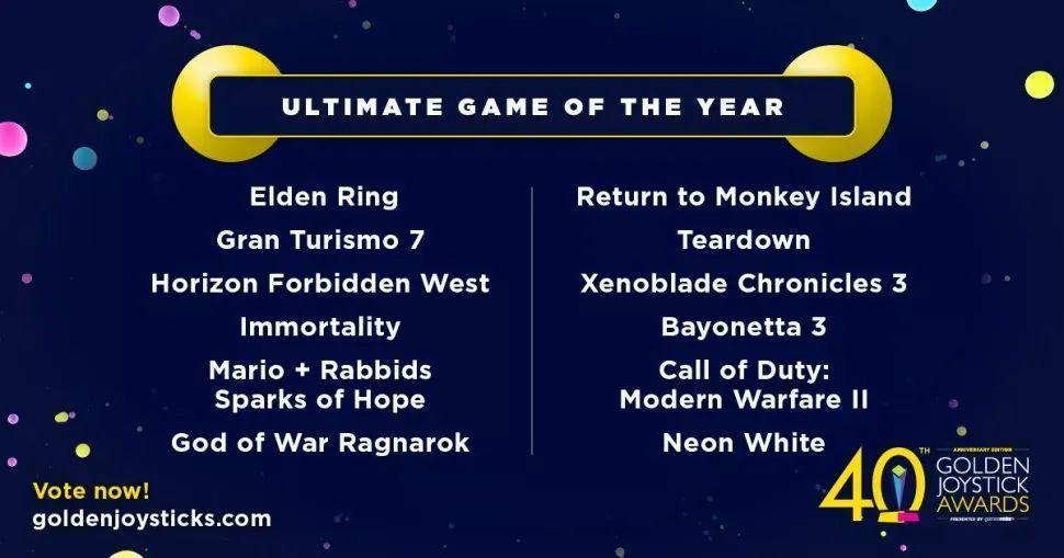 金摇杆奖是英国最大的游戏产业大奖,迄今已经举办了40届。评选机制为完全由玩家投票,最终票数最多的获得年度大奖,相对比较公平。
