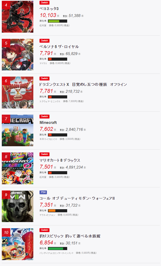 在10月31日至11月6日的新一周Fami通销量榜上,《斯普拉遁3》继续高歌猛进,连续9周蝉联冠军。