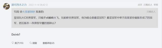 有网友认为,最弱冠军中单应该换成S9的Doinb,因为Doinb的游戏风格非常吃版本。