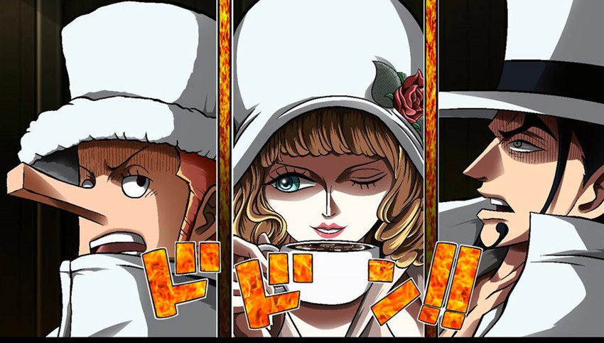 鬼岛之战出现的这三人组,起初一直处于观战状态,但为了完成五老星突然发出的命令,那就是阻止路飞的恶魔果实觉醒,【格尔尼卡】出击,然后在任务的最后被凯多所灭。