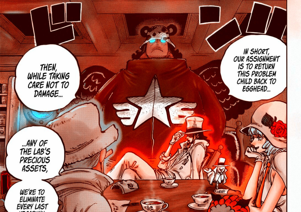 第三,尾田对于CP0非常重视,着重描绘了许多内容,这次贝加庞克篇章也安排了CP0搞事。五老星安排了路奇,卡库与史翠西上线,带上炽天使熊出发,前往【蛋头岛】,想干掉贝加庞克。根据路奇与卡库的话语,这次为何要干掉的这个第一有用的男人,是因为一个巨大的秘密。这一切与五老星有关,也与前 不 久露露西亚岛上发生的事情有联系,但探究的两人被史翠西阻止了。根据最新漫画的解释,贝加庞克与龙关系紧密,还获得了奥哈拉三叶草博士的古代书籍,复刻了古代的科技,所以五老星要抹除掉贝加庞克。