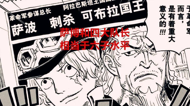 那么萨博和四大队长就变成了六子水平了,萨博在没有得到烧烧果实的时候,实力确实一般,但他有了烧烧果实之后,表现出了惊人的实力,他跟四大队长联手救出暴君熊,实力是有的,但不多,虽说萨博表面上是革命军的接班人,但他还是有点年轻了,现在的萨博也等于路飞,正在锻炼他成为革命军的首领,可按照目前的情况来看,萨博暂时还不能独当一面,除非萨博后期也有霸王色,不然他可能就真的是六子水平了。