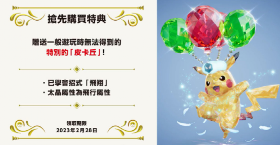 选择「通过互联网接收」,就可以获得预约的特典宝可梦——一只自带飞行技能的皮卡丘宝可梦,太晶化属性是飞行系。