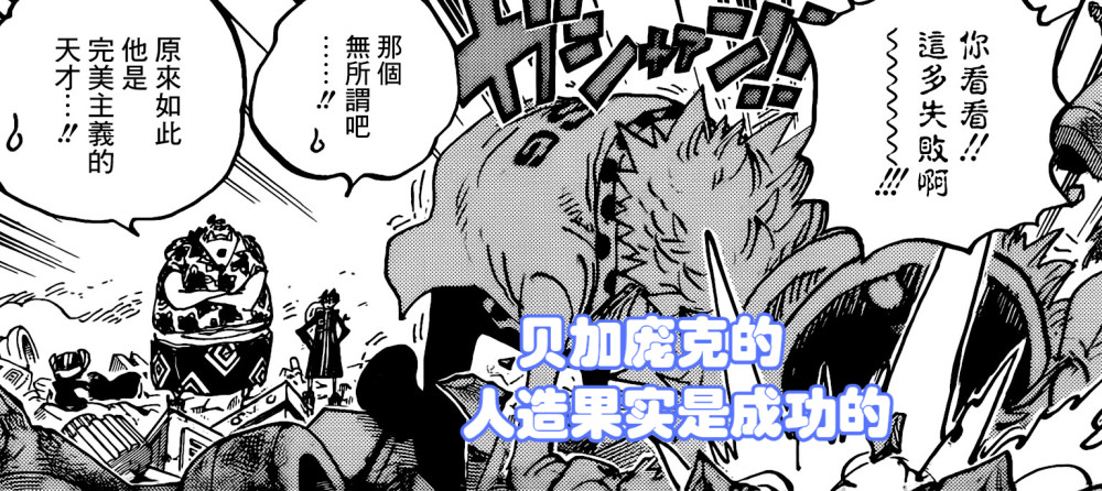 因此在这一话贝加庞克说【因为是粉色的龙,所以是失败品】。这句话奠定了贝加庞克跟尾田一样,也是一位完美主义者,追求完美的科学,不能有任何的瑕疵。